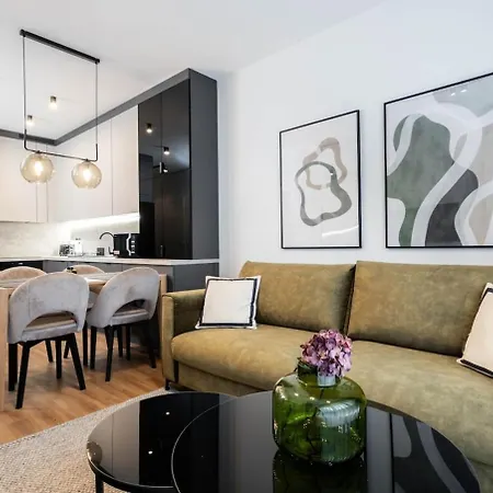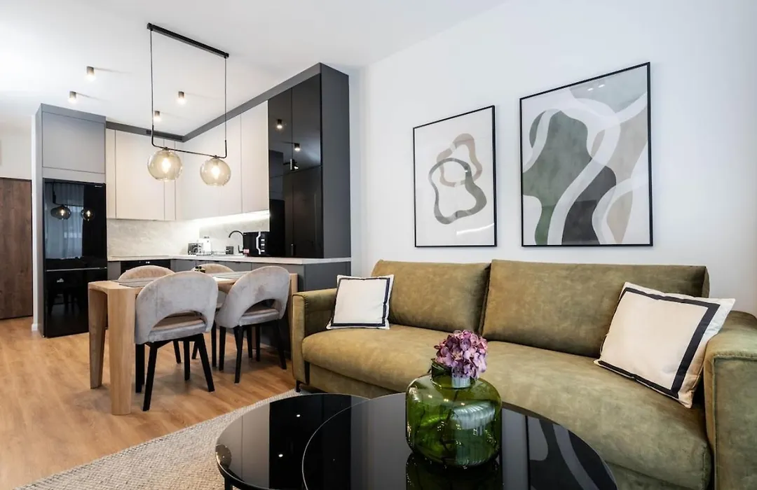 1-pokojowy Earthy Elegance Suite Mokotow oferuje miejsce do pobytu dziennego, balkon i w pełni wyposażoną kuchnię, a także takie udogodnienia jak zmywarka. Zaletą obiektu noclegowego jest obecność suszarki do włosów i ręczników w łazience. Ponadto do dyspozycji Gości oddzielna toaleta i prysznic.